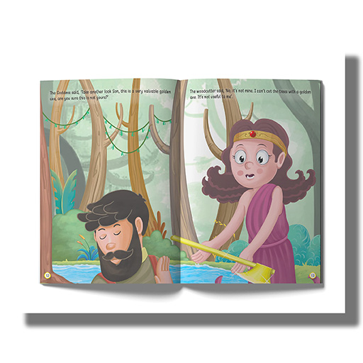 A woodcutter accidentally drops his iron axe in a river. He is instead offered a golden axe to replace his lost one. Will he remain honest?